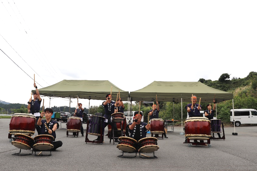 また、スペシャルゲストとしてご当地タレントの高村公平さんとちんねんさん、南阿蘇村の太田吉浩村長をお招きし、イベントを一緒に盛り上げていただきました。さらにイベントの最後には、南阿蘇村を拠点に活動する南阿蘇太鼓の皆さんに、和太鼓の生演奏を披露していただき、力強い壮大な音色と全身を使ったダイナミックな演奏でイベントを締めくくっていただきました。