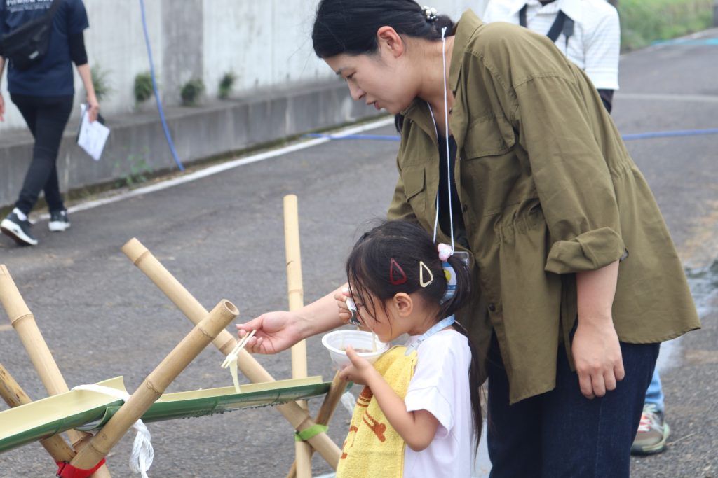当日は、17組68名の方々にご参加いただき、熊本の大自然を満喫しながら、稲刈り・脱穀体験や、プレミアムウォーターの工場見学、生き物観察会、熊本名産あか牛のBBQ、やまめつかみ取り、流しそうめん等、様々な企画を実施いたしました。稲刈り・脱穀体験では、2025年5月に実施した「田植えイベント」で参加者の皆様が植えた「あきげしき」の稲刈り・脱穀を手作業でおこない、収穫の喜びを分かち合いました。