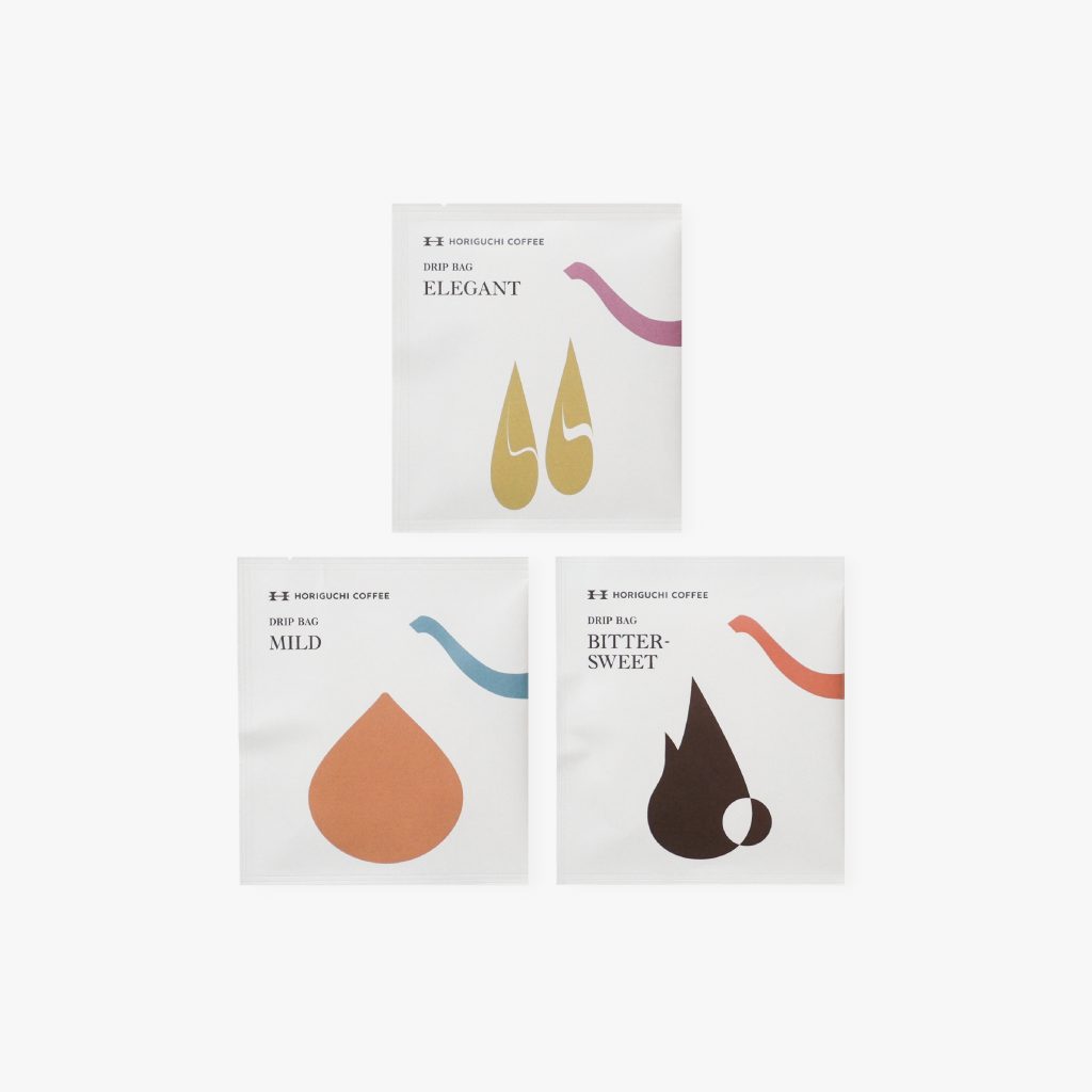 一杯分に必要なコーヒー粉がフィルターに詰められたカップオンタイプの「ドリップバッグ」。お手軽さを備えつつ本格的なスペシャルティコーヒーの風味を体験していただけます。3種類の味わい「ELEGANT」「MILD」「BITTERSWEET」がそれぞれ2袋ずつ入ったアソートセットで、気分やシーンに合わせて飲み分けることができます。